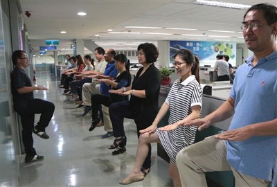 【本報新北訊】為推廣運動健康瘦身習慣,新北市政府民政局今天邀請健身達人李一休分享個人瘦身經驗,並帶領學員利用辦公室椅子做全身運動及登梯運動。