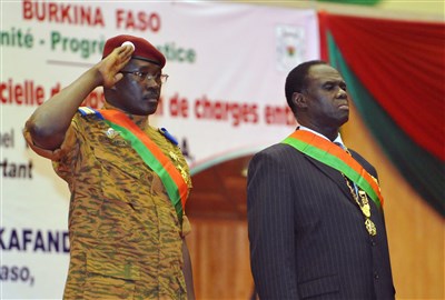 圖為被布吉納法索總統府衛隊拘禁的臨時總統卡芳多(右)和總理席達(左)。圖/法新社