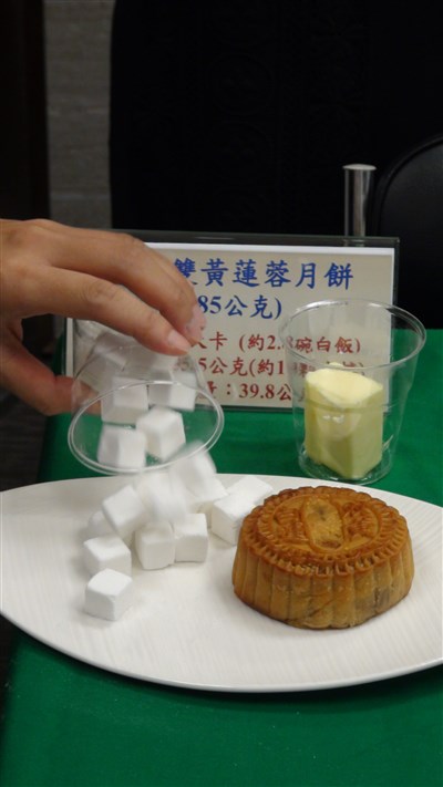 廣式月餅熱量高,小小一顆雙黃月餅,熱量800大卡,含糖量更高達約19顆方糖。圖/李樹人