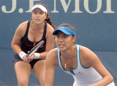 詹詠然(左)與妹妹詹皓晴(右)今天狀況絕佳,在東京女網公開賽4強戰擊敗烏克蘭的小朋達蘭柯和莎夏克。圖/資料照片