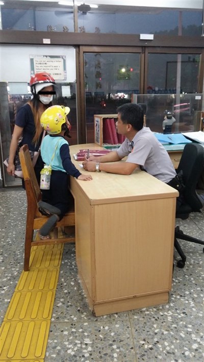 嘉義市警方今天表示,這名3歲男童日前獨自跑進派出所,手中拿了1個皮夾,向值班員警大喊「警察叔叔,這個交給你」,隨即跑出派出所。值班員警連忙叫住男童,並跟到派出所外,才發現原來是男童的母親騎機車,陪男童到派出所報案,員警於是請2人進入派出所完成報案手續。