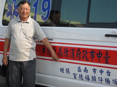 台中市頂橋仔頭福德宮主委林天化,受到土地公托夢,終於要捐出救護車。圖/游振昇