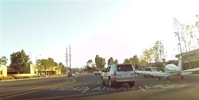 【本報綜合外電報導】等紅燈時突然看見一架飛機從眼前「滑」過去要怎麼辦呢?美國南加州一名駕駛日前下班行經一個十字路口時,就看到一架白色小飛機從前方道路「開」過去,讓他嚇了好大一跳,忍不住大叫,「開玩笑的吧?」