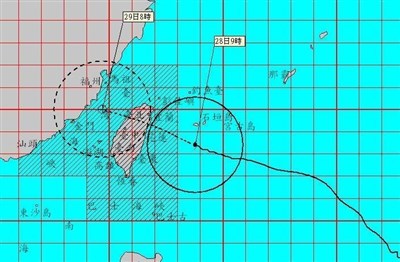 根據氣象局顯示的最新資料,杜鵑颱風速度加快,8時半中心位置在花蓮的東南東方約260公里之海面上,以每小時18轉21公里速度,向西北西移動,其暴風圈已進入台灣東半部近海,對台灣各地及澎湖、馬祖構成威脅。預估今天晚上到明天清晨風雨影響最嚴重。