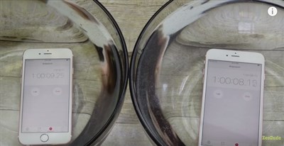 儘管蘋果在官網上的iPhone 6S、6S plus的規格介紹並沒有公開表示iPhone具有防水功能,但Zach Straley分別將iPhone 6S、6S plus同時泡進兩碗水中做防水測試;在泡水前,他都將兩支手機啟動馬表計時功能,計算泡水時間。