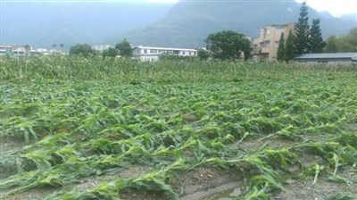 花蓮多處農田裡的農作物倒伏。圖/范振和