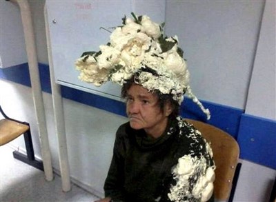 【本報綜合外電報導】急診室外出現一顆行動花椰菜?近日網路瘋傳一張照片,只見一婦人一臉無奈坐在急診室外,頭上頂著一坨白,像極一顆花椰菜。原來這名婦人誤用工業用發泡劑,以為這是用來固定造型的慕斯,因此弄巧成拙。