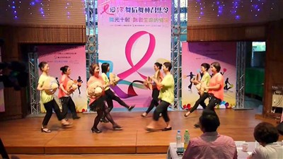 台灣癌症基金會為鼓勵乳癌病友,今天舉辦「愛波舞后」活動,來自全國各地將近200位乳癌病友和家屬齊聚舞動身體。