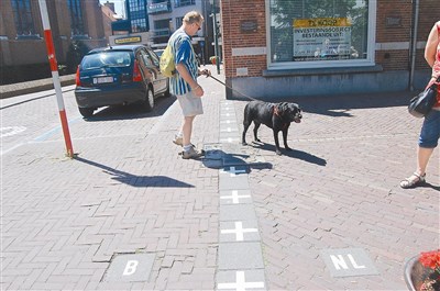 荷蘭南部一個名叫巴爾勒納索、比利時人稱為巴爾勒赫爾托赫的小鎮,罕見的有兩個國籍、兩個市長,隨時一個跨步,主人在比利時,狗狗卻已到了荷蘭。圖/中央社