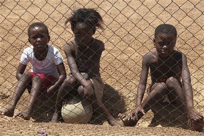 世銀4日宣布,全球極端貧窮人口比例首度低於10%。圖為南非普勒托利亞市一處足球場邊的貧童。圖/美聯社