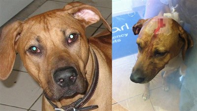 阿努必斯被歹徒開槍打中頭部,子彈卡在頸部,奇蹟地保住一命。圖/取自網路