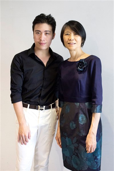 總統夫人周美青(右)今年國慶服裝出自台灣新銳設計師王劭宇(左)之手。王劭宇共設計3套服裝,符合周美青一貫的低調、簡約、實穿風。圖/中央社