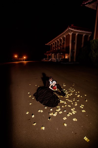 徐光輝的婚紗照,新人黑色禮服搭配上黑、白、紅3種色調,加上僵屍妝及七孔流血妝,營造恐怖氣氛,徐光輝回憶,當時一行人浩浩蕩蕩前往公墓拍攝時,狀況都很正常,只有化妝師感覺有點「毛毛的」。