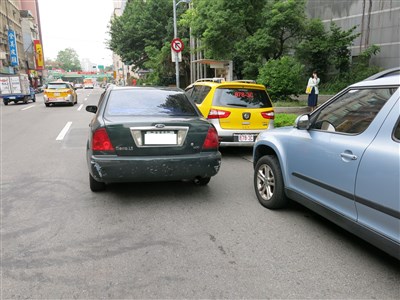 7月1日起併排停車加重處罰,台北市警方加強取締重點,違規件數大增。圖/黑中亮