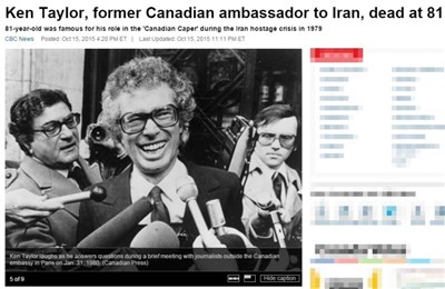 【本報綜合外電報導】1979年伊朗人質危機震驚全球,當時不惜犯險、庇護和協助6名美國人從大使館逃脫的前加拿大駐伊朗大使泰勒(Ken Taylor)今天以81歲之齡辭世。泰勒家屬對媒體做了以上表示。
