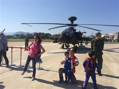 軍方展示除了阿帕契外,還有OH-58D戰搜直升機及UH-1H運輸直升機共3種機型,現場並安排飛行官講解,民眾有問題就能立即回覆。首發團之一的中華民國觀光產業資訊協會理事長葉正吉說,這次阿帕契因為李蒨蓉而聲名大噪,當然會有好奇心,8月向國防部提出申請,很開心可以成行。