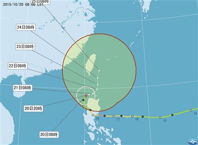 根據氣象局最新颱風消息,巨爵上午距離鵝鑾鼻南方約360公里,緩慢向北移動,正進入巴士海峽。
