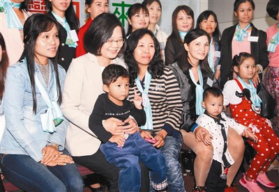 蔡英文允諾,民進黨若執政,一定立刻推動三項新移民政策,要保障新移民姐妹能得到更平等的社會福利待遇,也要積極讓地方政府各種單位加強雙語服務;研議放寬新移民姐妹的學歷承認,積極解決各種就業歧視的問題;最重要的是,新台灣之子一定要學習母親的語言。