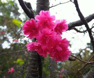 兩個颱風接連來襲,造成美麗錯誤,陽明山櫻花竟然開了。圖/陽明山公園管理處提供