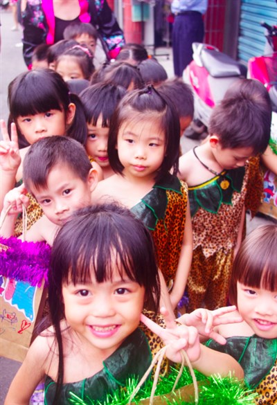 今日下午嘉年華會中,現場展開熱鬧滾滾的「不給糖、就搗蛋」萬聖節變裝遊行。吸引逾千名三蘆地區幼稚園、國小學生粉墨登場,個個化身成超萌的小幽靈、小公主,大手拉小手一同變裝踩街要糖吃。
