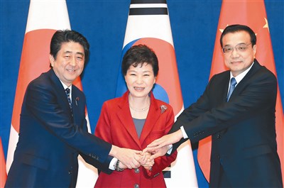 南韓總統朴槿惠、中國大陸國務院總理李克強、日本首相安倍晉三拋開歷史仇恨,一日在首爾舉行九十分鐘會談,商討共同的安全及貿易問題。