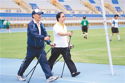 粉絲王先生說,北歐式健走在台灣推廣六年,約有三萬人參加此運動,本是北歐人在夏季訓練滑雪選手,經改良而成的健走運動,能鍛鍊全身的肌肉群,是能讓運動員全身流汗不受傷的極佳運動,自己使用三年多覺得成效不錯。