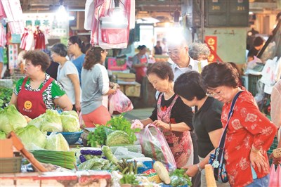 主計總處今天公布今年1 0 月消費者物價C P I 比去年同月漲0.31%,主要因蔬菜、水果、水產品及肉類價格比去年同月為高。圖為北投市場民眾採買蔬果。圖/林伯東