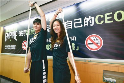 董氏基金會昨日,呼籲年輕人「保持無菸新生活,做自己的CEO」,並邀請國立體育大學學生現場示範如何做肌力抗菸操。圖/中央社