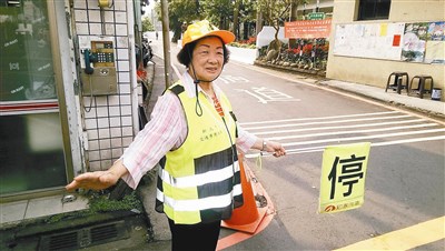 【本報台北訊】「跟小朋友在一起就忘記老了!」新北市瑞芳吉慶國小八十二歲導護義工王林春燕(見圖/資料照片),十四年前牽孫女上學時受邀當導護義工,從此服務「上了癮」,颱風天也出門巡視,校友返校必向「阿嬤」問好。她說,和學生相處心境更年輕,只要還能動,就會做下去。