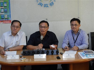 警政署副署長黃宗仁(中)、警政署交通組副組長張夢麟(左)上午在內政部召開記者會,提出警訊表示,行人違規、車不讓人是目前國內交通事故造成死亡的兩大主因。圖/李順德