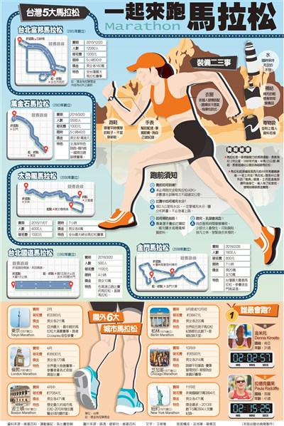 前進國外,你知道那一個城市馬拉松是世界上最大的馬拉松嗎?那一個又是歷史最悠久的城市馬拉松?馬拉松的世界紀錄,又是在那一座城市締造的呢?東京馬拉松的歷史居然比台北馬拉松還要短?透過資訊圖表,讓你一目了然。