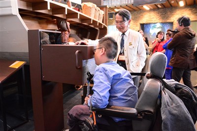 例如售票處設有專屬服務櫃台,服務高齡、行動不便及其他特殊需求條件的觀眾,並特別提供筆談諮詢,也提供口述影像導覽及啟明專案,帶領視障觀眾從口述中感受時代與場景氛圍,並搭配觸摸展場造景、模型、建築構件等。台史博各項服務都邀請多個身心障礙團體實際檢測逐步改善,他們都是最好的老師,才有現在的成果,希望讓身障朋友也能輕鬆享受博物館。