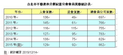 台北市不動產仲介經紀業公會會員異動統計表