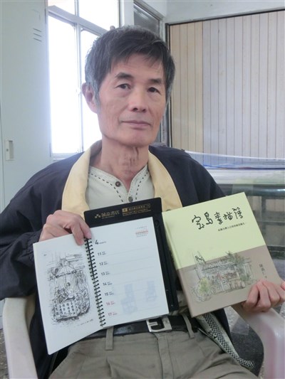 屏東縣高樹基督長老在教會牧師陳義仁擅長插畫,勾勒出人文風情,誠品書店屏東店收錄41幅作品印製成2016年桌曆。圖/蕭雅娟