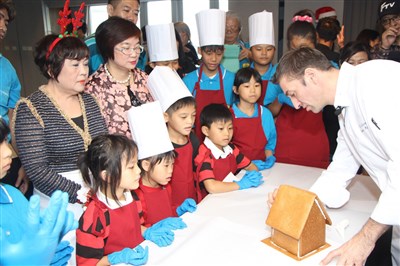 【本報台南訊】溫馨耶誕佳節前夕,台南晶英酒店昨邀請白河地區12名孩童,到飯店跟著法籍西點行政主廚羅倫學做薑餅屋,李姓等學童都是第一次學做薑餅屋,個個大呼過癮。