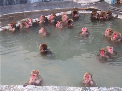 12月北海道的氣溫常在攝氏零度左右,熱帶植物園內大約飼養近百隻彌猴,還設了一個專用的水池,並引進湯之川的溫泉,每到冬季,猴子就會自動跳入池內,在繚繞的溫泉熱氣中,享受泡湯的溫暖。