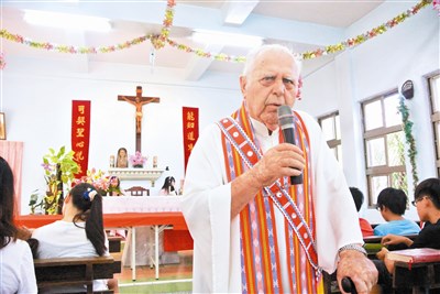 【本報台北訊】今年八十四歲的法國籍神父潘世光,來台傳教超過半世紀,為宣揚教義方便,鑽研阿美族話,與另一位神父博利亞合編阿美族語法語辭典,成為學習族語的重要工具書,昨天獲教育部長吳思華頒發「推展本土語言傑出貢獻獎」。潘世光因身體不適,由祕書王菊蘭代領。被問到潘世光得這個獎的感想,王菊蘭表示,「潘神父說沒什麼,這是他應該做的。」