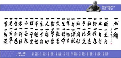 【佛光菜根譚星雲大師一筆字】(18)一加一頌 星雲大師 |2016.02.04 語音朗讀 2167觀看次 字級 大 中 小 一加一頌 文/星雲大師 一曉一天明 一天一日行 一路一條道 一往一來去 一手一片天 一點一開始 一句一讚歎 一筆一幅畫 一生一條命 一笑一歡喜 一默一聲雷 一人一顆心 一家一合相 一事一種理 一諾一千金 一小一無限 一念一禪法 一空一切色 一花一世界 一葉一如來 前一篇文章 【佛光菜根譚星雲大師一筆字】(17)自然界與人 下一篇文章 【佛光菜根譚星雲大師一筆字】(19)十好加十好 熱門新聞 01動物的精采瞬間(上)2026.02.0802台北書展 佛光山拉近佛與讀者距離 看得懂用得著 佛教徒必讀經典重磅獻禮2026.02.0703斯里蘭卡獨立節 佛光人至駐菲大使館同賀2026.02.0704健康瘦身, 遠離糖尿病!2026.02.0705台北書展 佛光山拉近佛與讀者距離 文心雕佛問世 楊渡、許悔之、廖玉蕙遇見佛 2026.02.0706台北書展對話 佛光山安定動盪人心2026.02.0807王德瑾 願做有溫度的藝術家2026.02.0708福山寺送暖 福田戶投鉢植福2026.02.0709【生活智人154】英國作家皮可‧艾爾 面對紛擾 以靜制動2026.02.0710【營養專欄】聰明選豆,吃出植物性營養新高度!2026.02.07 訂閱電子報 台北市 天氣預報 台灣一週天氣預報 相關報導 【星雲一筆字古德悟道詩】(55) 【星雲一筆字古德悟道詩】(54) 【星雲一筆字古德悟道詩】(53)【星雲一筆字古德悟道詩】(52)【星雲一筆字古德悟道詩】(51) 【星雲一筆字古德悟道詩】(50) 作者其他文章星雲大師:供養的種類《星雲法語》人生四品星雲大師:四藝與人生星雲大師:如何養性星雲大師:正信之美星雲大師:養「氣」