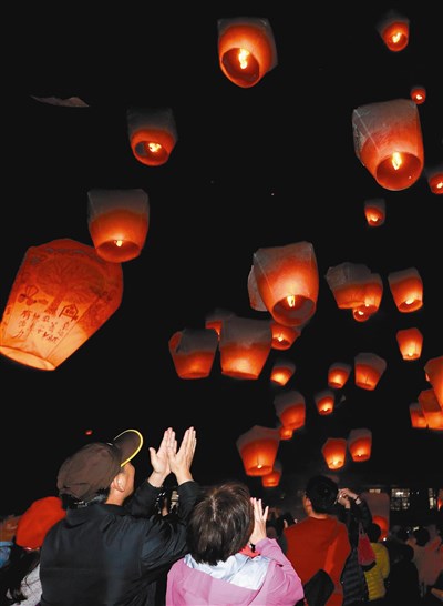 昨天共八波、總計四百八十盞天燈升空,十四日西洋情人節、二十二日元宵節兩天,新北市府也分別在平溪國中(十四日)、十分廣場(二十二日)舉行第二和第三場,將施放「心心相印主燈」和「環遊世界天燈」,上午十時三十分開放現場報名,額滿為止。