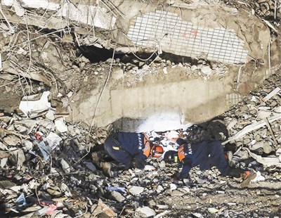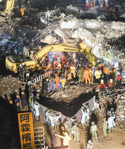 【本報台南訊】二○六南台大震造成「維冠金龍」九棟連棟大樓倒塌,晚間六時四十分維冠大樓震災現場,在A棟十一樓又找到一名年約四十歲的男性罹難者,維冠大樓死亡人數增至九十五人,加上歸仁區兩名死者,小年夜台南地震累計已死亡九十七人,尚有二十八人待救中。台南市長賴清德說,救援非常困難,但絕不放棄一絲希望。