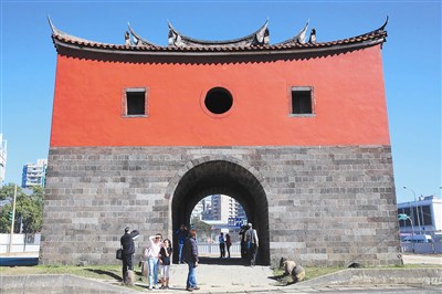 昨天施工區域圍籬撤除後,吸引許多民眾到北門前拍照,許多好奇的民眾也走進城門內,撫摸古老的城牆磚石,遙想台北城的古早風華年代。