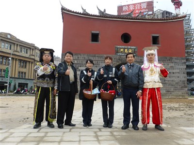 分局長陳文智昨天巡視北門周遭交通狀況時,看到乍現的城門身影,想出請「古人」來走城門的構想,果然吸引民眾目光。