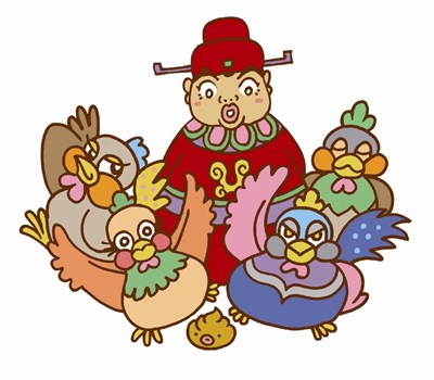 有一句話說「人未到,聲先到」,想不到踏腳板都還沒有進到公堂內,就已經臭氣沖天了。眾人捏起鼻子,但只有朱山不以為意,煞有介事的問:「臭踏腳板,現在你是唯一的證人,李婦說她放了兩籮筐的雞在茅廁門口,可真有此事?」眾人一聽,覺得實在太荒謬,哈哈大笑起來,而且都笑到不能自己。朱山大怒,高喊:「擾亂公堂者,統統抓起來!」官差聽令抓人,眾人紛紛求饒,此時朱山竟然說:「可以饒了你們,但在天黑之前,你們每一個人都要送一隻雞給我,每隻雞都要綁上你們的姓名。」