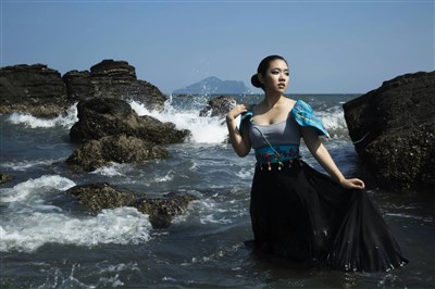 李欣穎說,高二有和族語老師學習布農族語,深深為自己原鄉的藝術風格著迷,和族語老師接觸的過程中,李欣穎向老師借了許多傳統服飾,大量運用藍、黑布料加上彩珠,將傳統的膝褲、長裙變成充滿時尚風格的流行服飾。