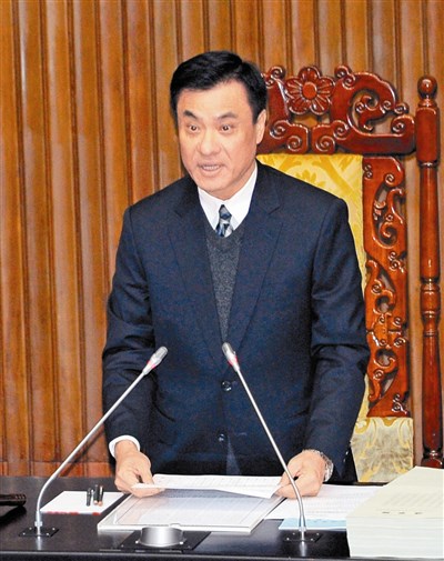 立法院長蘇嘉全昨日在立法院議場,主持第九屆立法院新會期開議,進行對行政院長張善政(圖)的施政總質詢。圖/中央社