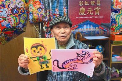 【本報台中訊】台中市知名景點彩虹眷村從昨天元宵節起,展開為期一個月的「彩虹燈趣花燈展」,「彩虹爺爺」黃永阜自繪的主題花燈將陪伴大家一整個月;台中市文化局並為黃爺爺歡慶九十四歲生日,他許下生日願望,希望今年能「心情愉快」,繼續為大家創作。