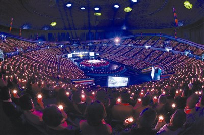 【記者杜憲昌桃園報導】佛光山寺與國際佛光會中華總會聯合舉辦的「二○一六新北暨桃竹苗區禪淨共修法會」,昨天在林口體育館登場,由佛光山百眾法師帶領來自新北市與桃竹苗地區逾二萬名信眾共同獻燈祈福。新北市長朱立倫、桃園市副市長王明德、新北市社會局長張錦麗、民政局長江俊霆、桃園市民政局長湯蕙禎等多位政府官員,國際佛光會中華總會總會長趙麗雲、國際佛光會世界總會法治長吳志揚、佛光山慈善院院長依來法師都到場共襄盛舉。法會禮請佛光山寺住持心保和尚、退居和尚心培和尚等五大師主法,並由佛光青年歌詠隊、佛光敦煌舞蹈團、桃竹苗區佛光啦啦隊,以及法師擊法鼓、國樂團與天鼓擊樂團共同表演的「龍騰虎躍」為法會開場,場面盛大殊勝。