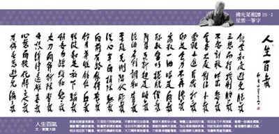 【佛光菜根譚星雲大師一筆字】(25)-2人生百氣 星雲大師 |2016.03.01 語音朗讀 1979觀看次 字級 大 中 小 人生百氣 文/星雲大師 飲食知度避免脹氣 三思而行控制脾氣 不要計較吐出怨氣 寬容大度對治小氣 樂觀上進自我打氣 卯足全力不再洩氣 高歌一曲唱走悶氣 聰敏靈巧擺脫傻氣 除舊更新趕走晦氣 淡泊名利調和貴氣 柔能克剛降伏盛氣 洗心革面捐除煞氣 向前有路休得喪氣 修身養性鎮住血氣 恬淡知足放下驕氣 稍安勿躁緩和怒氣 大刀闊斧斬除習氣 六根清淨遠離毒氣 心慈面軟化解戾氣 有備無患避免漏氣 前一篇文章 【佛光菜根譚星雲大師一筆字】星雲大師(25) -1人生百氣 下一篇文章 【佛光菜根譚星雲大師一筆字】(25)-3人生百氣 熱門新聞 01動物的精采瞬間(上)2026.02.0802【遨遊藝事】巴黎 黛瑪兄弟茶館(Dammann Frères)2026.02.060310年前震倒115死 台南維冠改建防震7級大樓2026.02.0604台北書展 佛光山拉近佛與讀者距離 看得懂用得著 佛教徒必讀經典重磅獻禮2026.02.0705王德瑾 願做有溫度的藝術家2026.02.0706加拿大祈禱早餐會 跨信仰凝聚共融2026.02.0907新加坡佛光山三好樓 扎首樁開啟弘法新頁2026.02.0608【生活智人154】英國作家皮可‧艾爾 面對紛擾 以靜制動2026.02.0709【營養專欄】聰明選豆,吃出植物性營養新高度!2026.02.0710福山寺送暖 福田戶投鉢植福2026.02.07 訂閱電子報 台北市 天氣預報 台灣一週天氣預報 相關報導 【星雲一筆字古德悟道詩】(55) 【星雲一筆字古德悟道詩】(54) 【星雲一筆字古德悟道詩】(53)【星雲一筆字古德悟道詩】(52)【星雲一筆字古德悟道詩】(51) 【星雲一筆字古德悟道詩】(50) 作者其他文章星雲大師:供養的種類《星雲法語》人生四品星雲大師:四藝與人生星雲大師:如何養性星雲大師:正信之美星雲大師:養「氣」