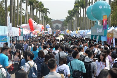 2016台大校園徵才博覽會6日展開,共有285家知名企業齊聚徵才,大學新鮮人最高起薪5萬。圖/中央社