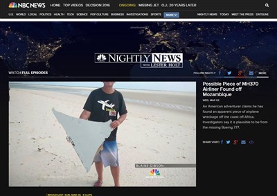 法屬留尼旺島1名居民繼去年發現馬航失蹤MH370班機機翼殘骸後,又再撿到疑似這架客機的碎片。圖/擷自NBC NEWS